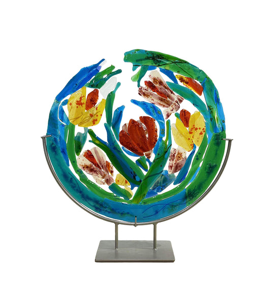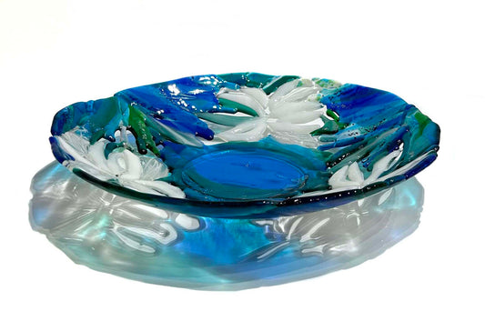 Abstract Fused Glass Tray -Turquoise/Amber/Ultramarine