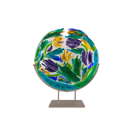 Abstract Fused Glass Tray -Turquoise/Chartreuse/ Violet