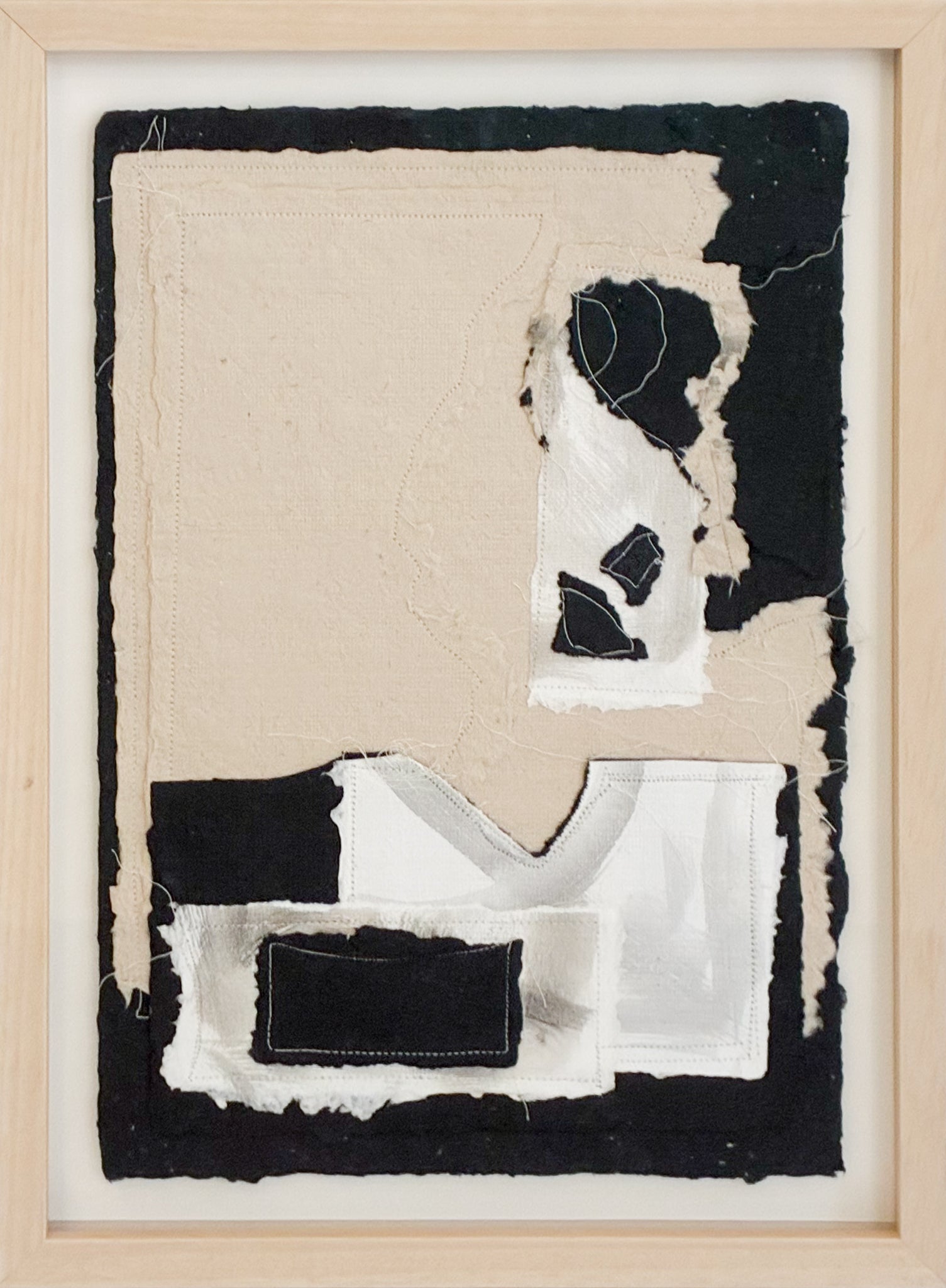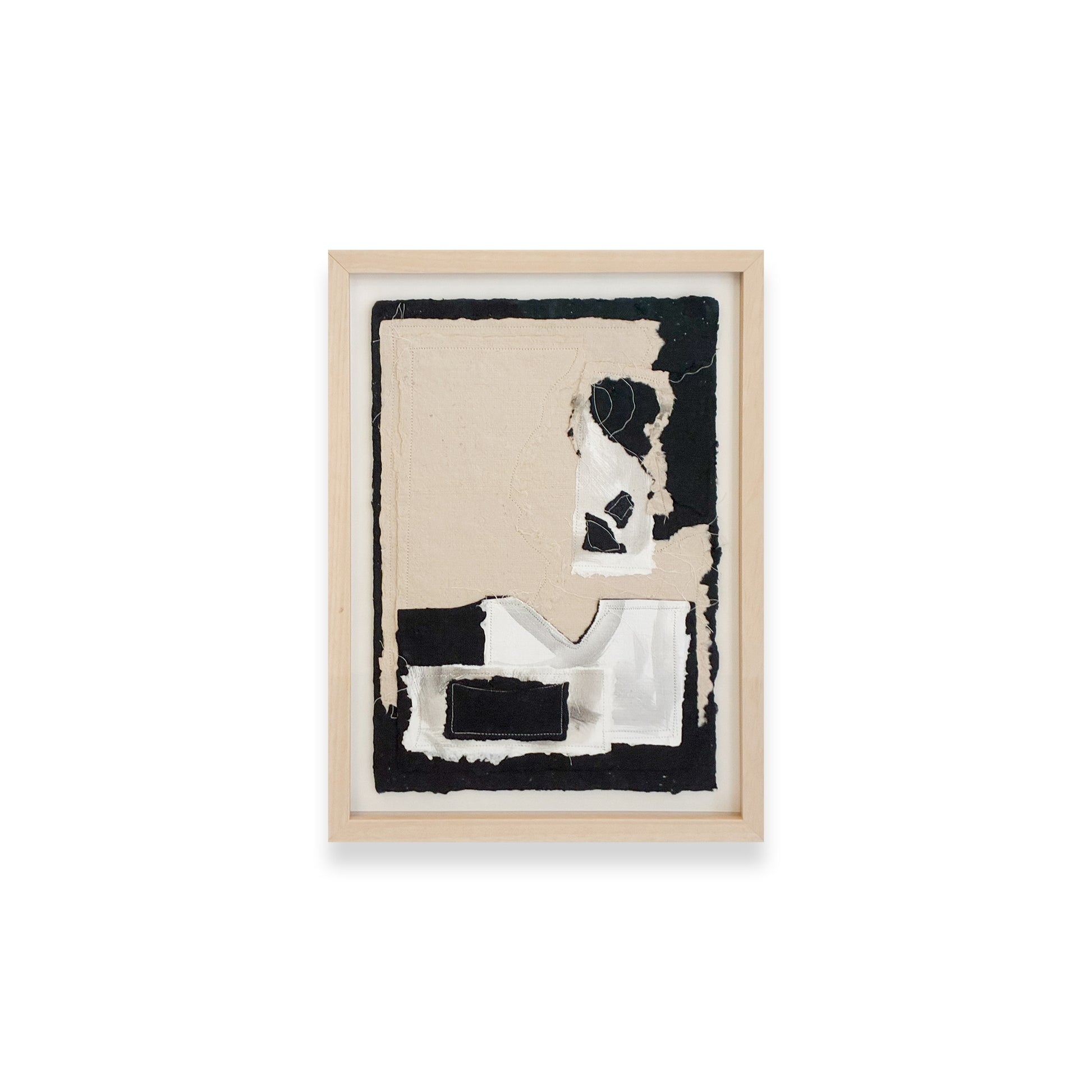 - Sewn collage - handmade abaca, cotton, and denim paper