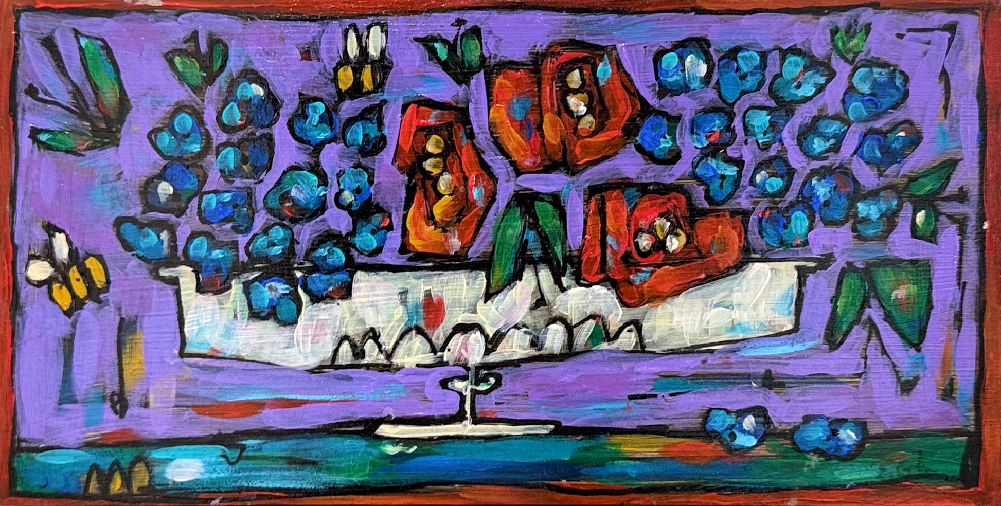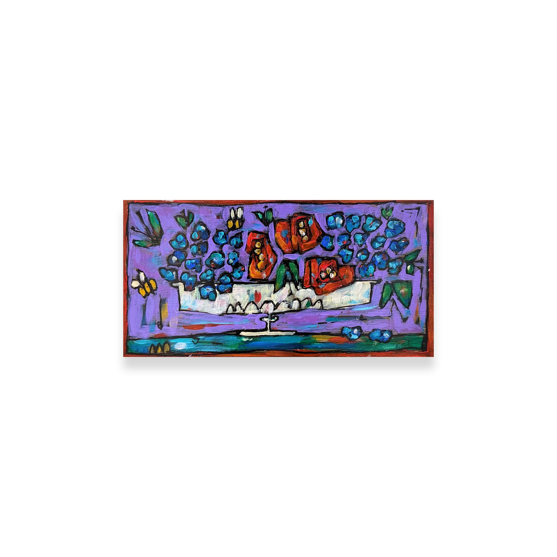 - Acrylic on wood panel with decorative edge