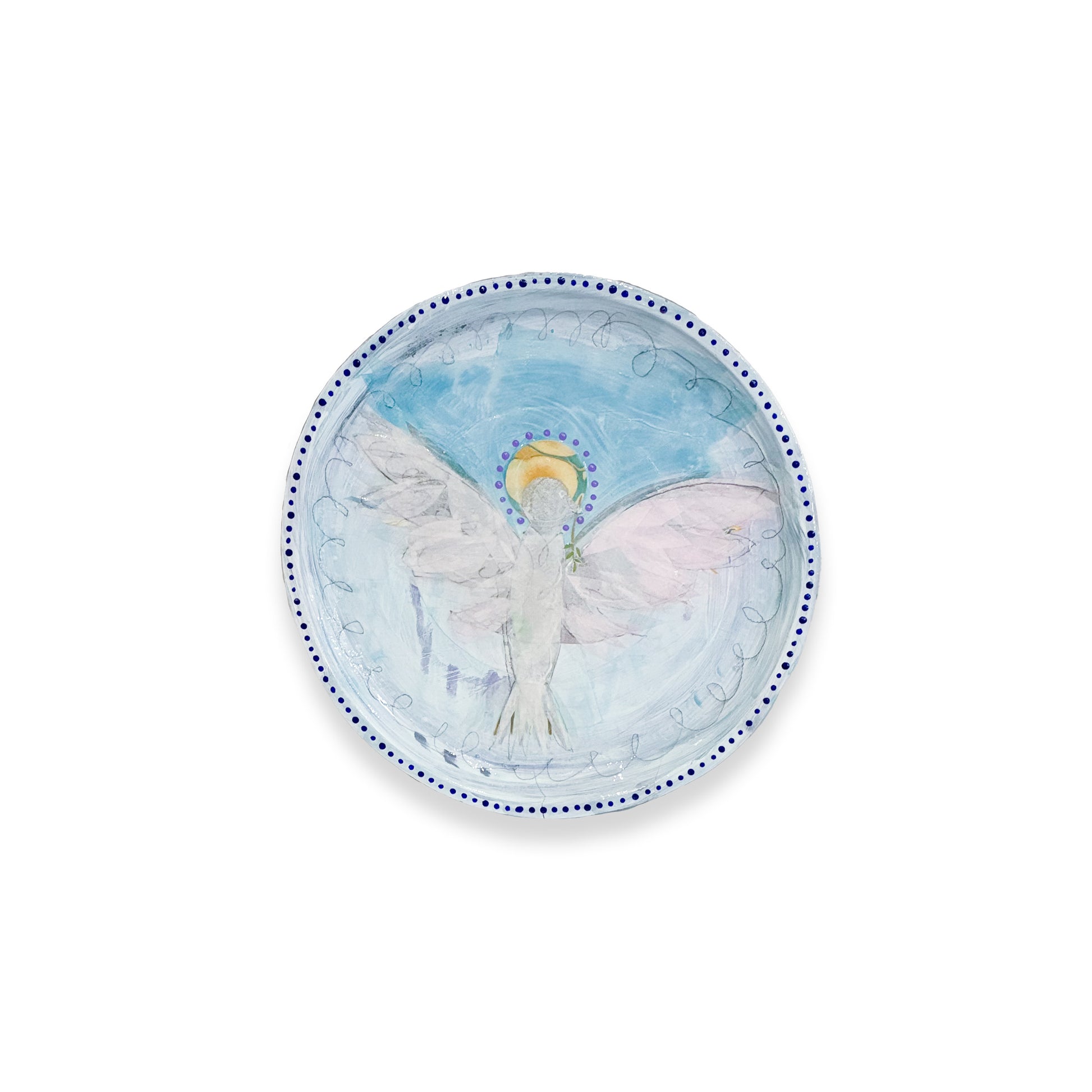 - Mixed media on wooden plate
