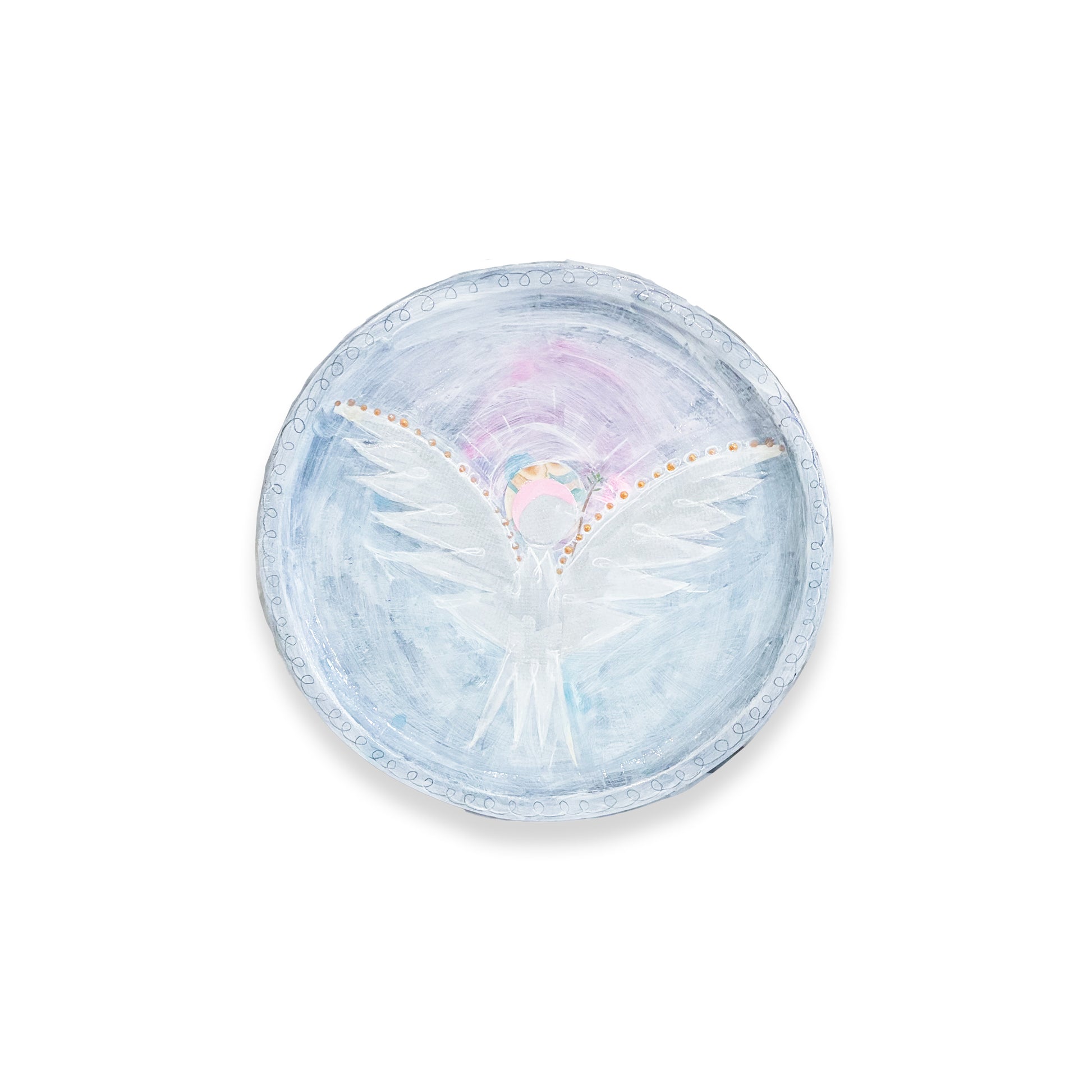 - Mixed media on wooden plate