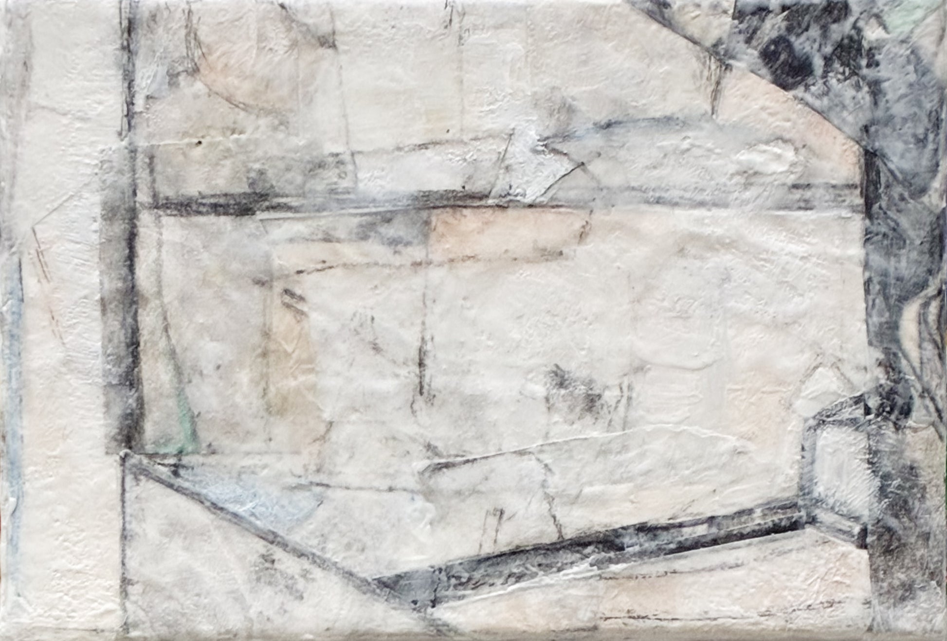 - Encaustic painting - Encaustic with watercolor and drypoint engraving collage elements on birch panel