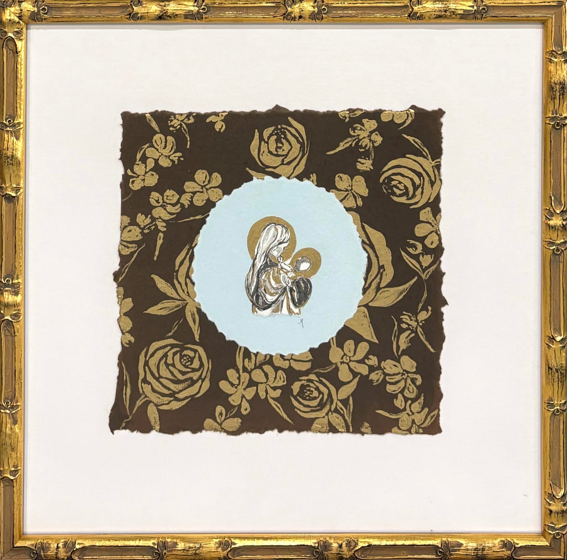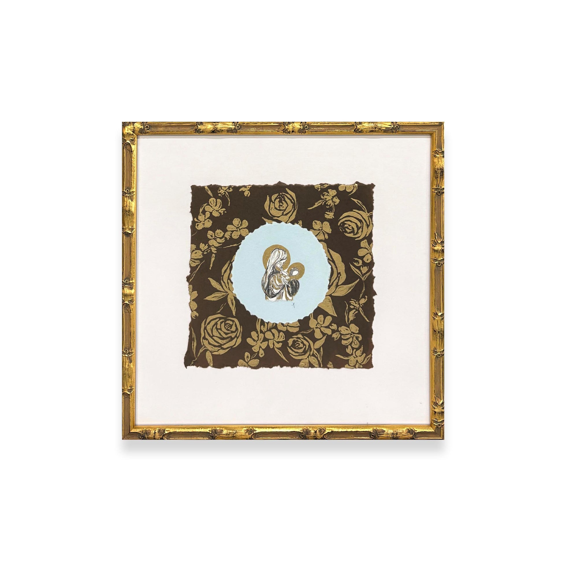 "This soft, sweet Christmas collection has layers of mixed media making up each piece. Using handmade papers in baby blue, soft pink, terracotta and chocolate brown, paired with delicate golden botanicals and ink and gold classic Christmas scenes, these paintings came together so beautifully. I cherished making each piece and I hope collectors will adore these pieces not only during the holiday season, but throughout the year!"