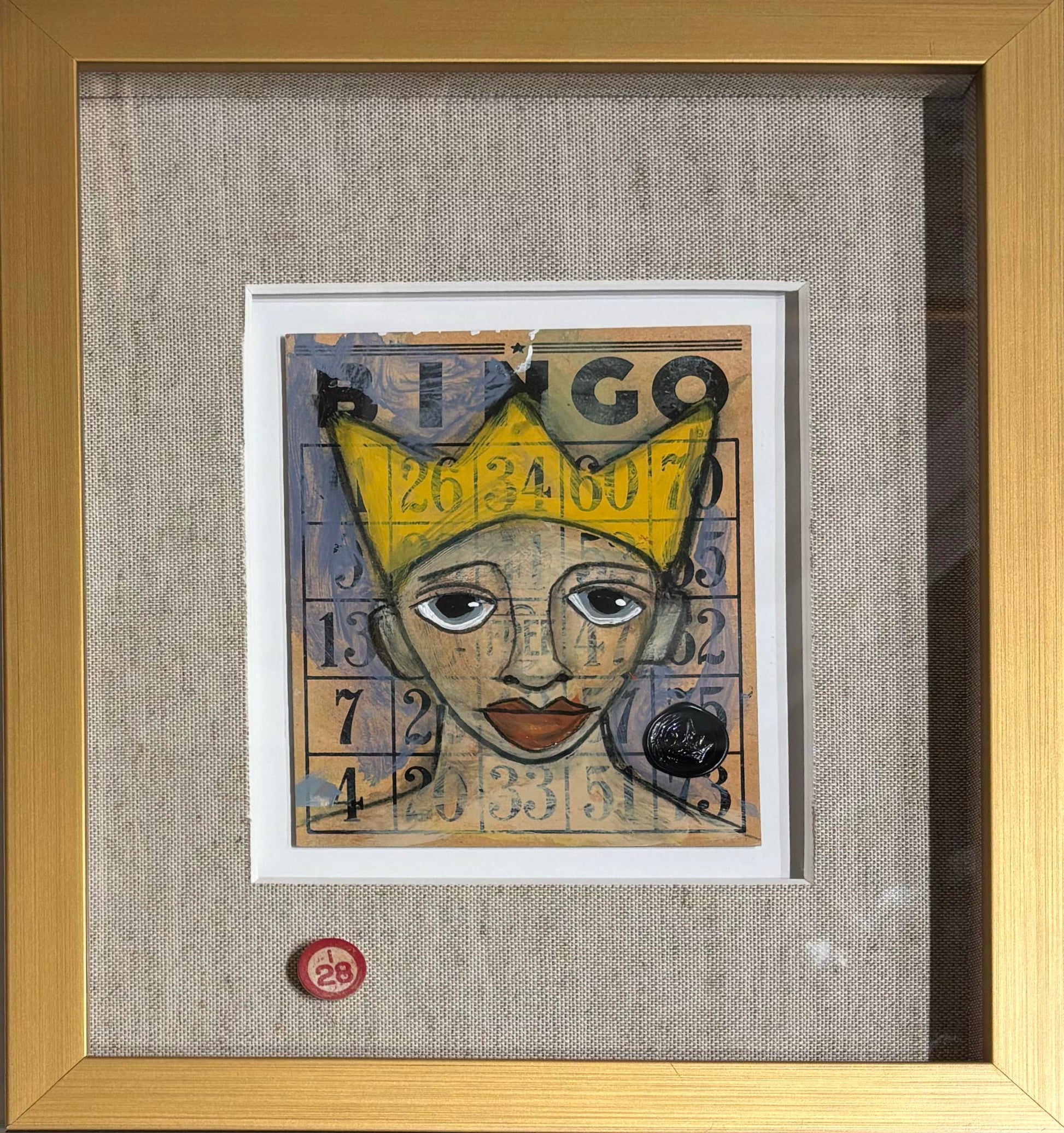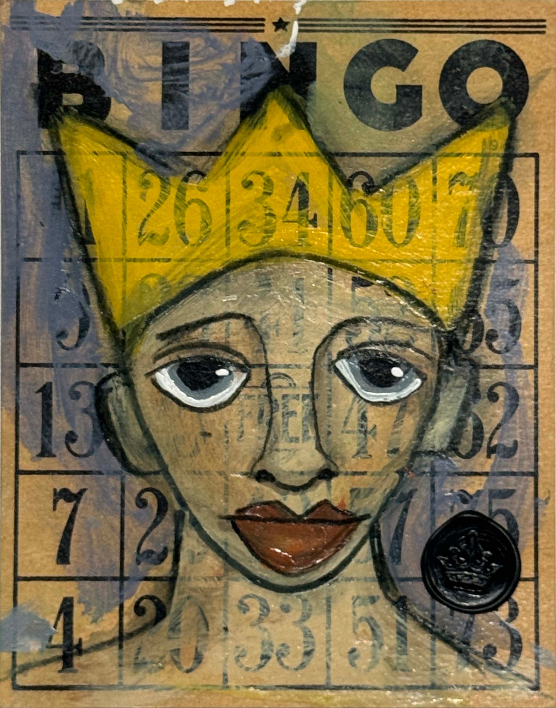 - Mixed media on vintage BINGO card